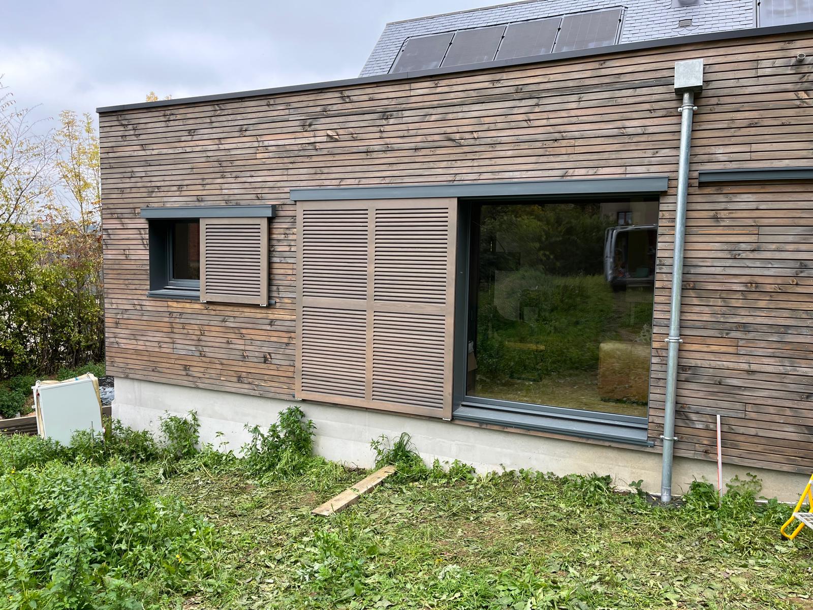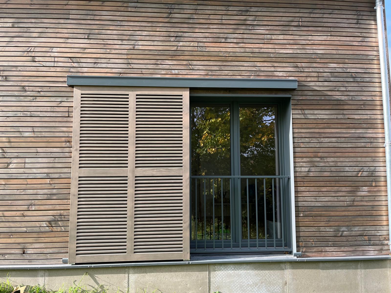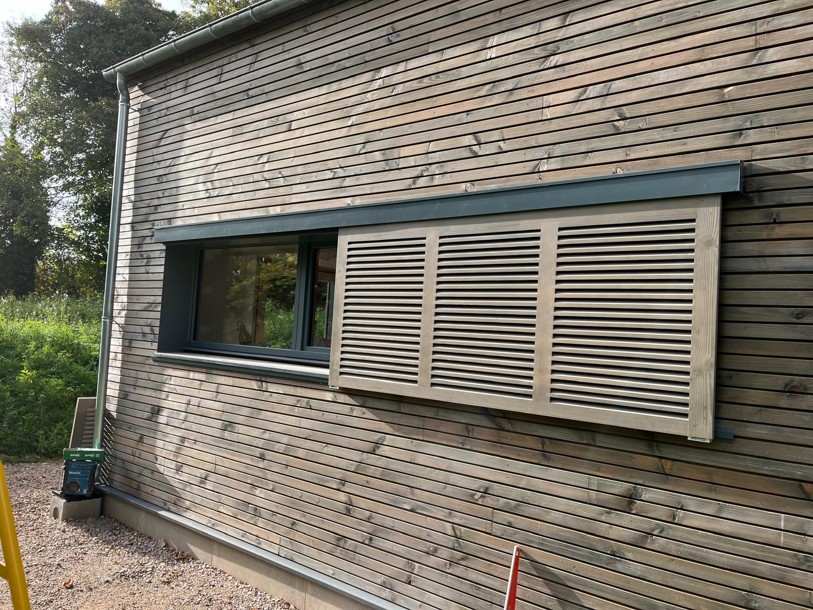 Volets en douglas pour s'accorder avec le bardage.